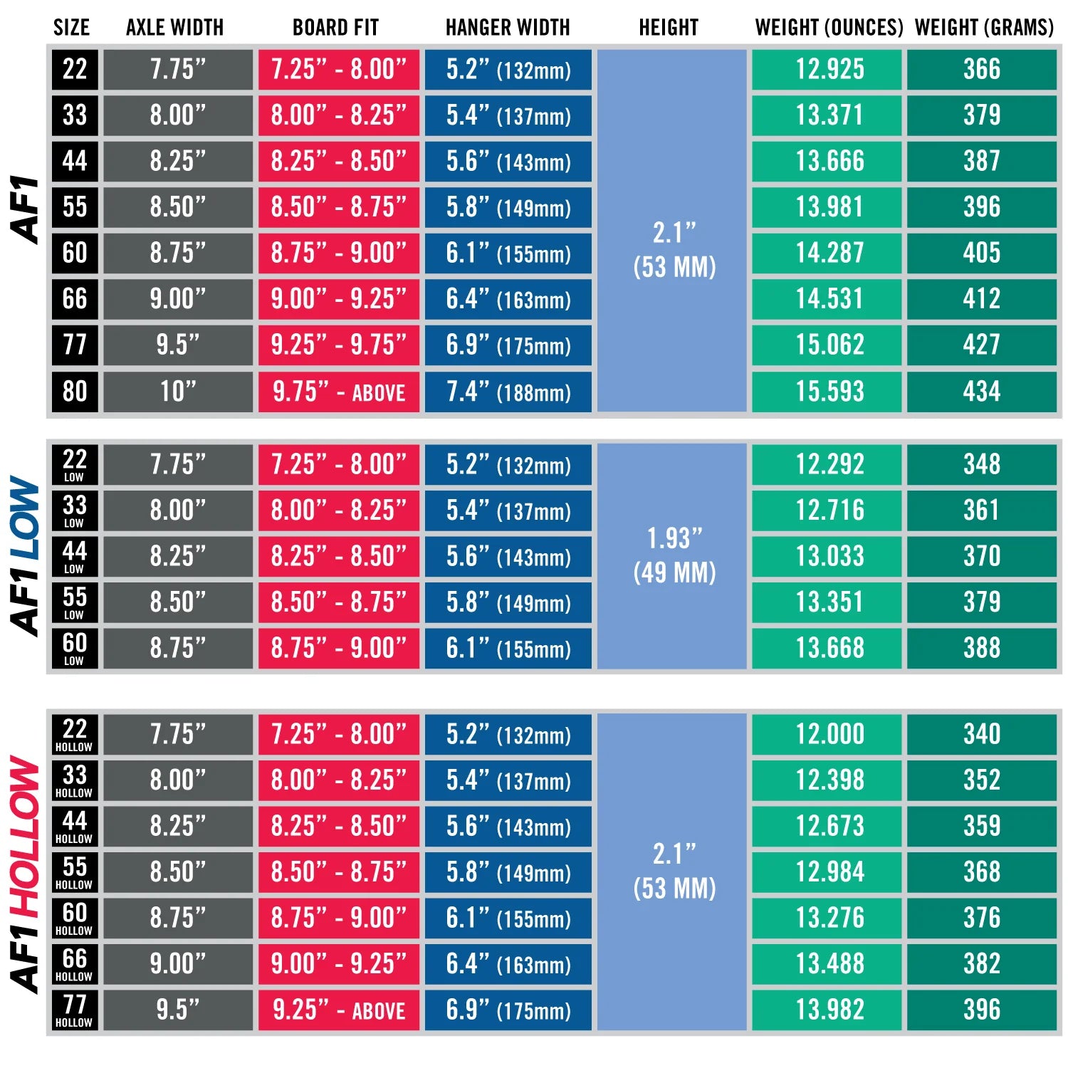 Die Ace 44 AF1 (8.25") ist für alle, die diesen typischen Ace-Flow wollen: super responsive Turns, smoothes Lenkverhalten und richtig viel Kontrolle in Lines, Carves und Transitions. Die AF1 Serie setzt auf ein T6 heat-treated Hanger/Baseplate-Setup und ein robustes Casting-Verfahren – gebaut, um harte Sessions wegzustecken. Außerdem richtig praktisch: re-threading axle nuts, damit du dir “gegrindete” Achsenenden easy wieder gängig machen kannst. 🛠️⚡