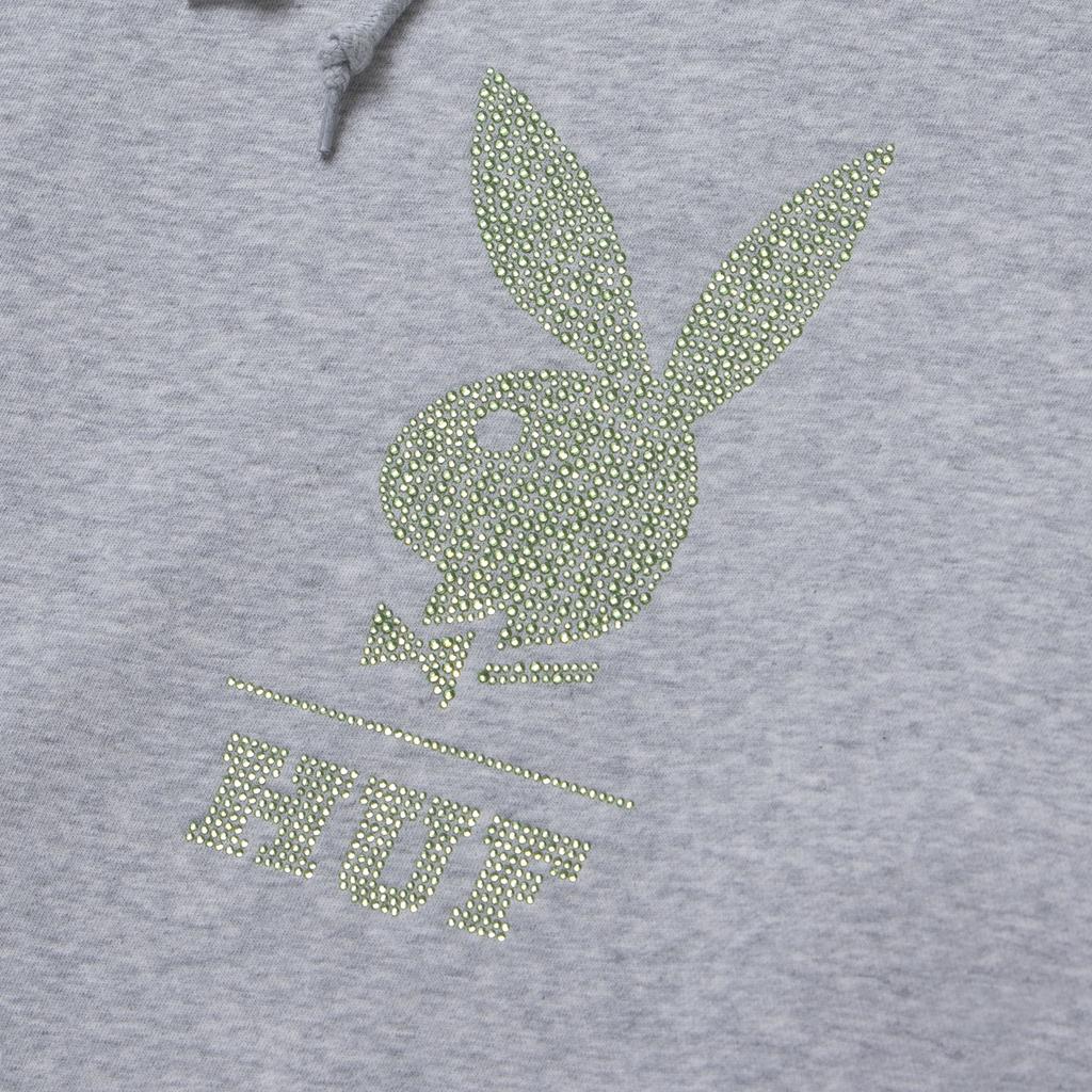 Der HUF x Playboy Rhinestone Hoodie in Grau vereint ikonischen Streetstyle mit einem Hauch von Glamour. Die edlen Strassstein-Applikationen sorgen für ein auffälliges Design-Statement, das garantiert alle Blicke auf sich zieht.